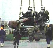 米軍車両と155ミリりゅう弾砲は、民間の貨物船に乗って