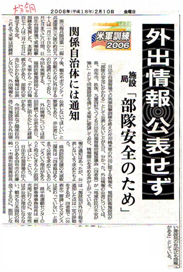 2006年1月30日、日出生台での6回目の米軍演習開始初日。