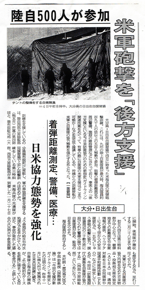 国民・労働者を動員する内容が盛り込まれています。そして、日出生台をはじめとする本土5ヶ所で1997年より行われてきた米軍演習は、