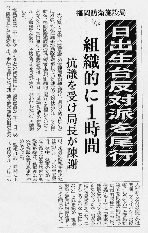 大分合同新聞2001年2月24日記事■防衛施設局が住民を尾行