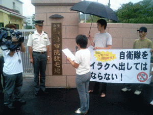 2005年7月29日 大分県内の陸上自衛隊隊員を含む第7次イラク復興支援郡のイラク派遣中止とすでにイラクに派遣されているすべての自衛隊の即時撤退を求める要請文を湯布院駐屯地を通じて出しました。