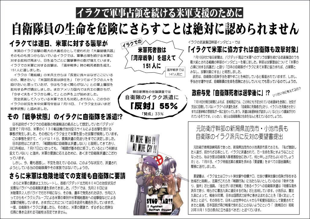 自衛隊員の生命を危険にし、イラクの混乱をさらに深める自衛隊派遣に反対します