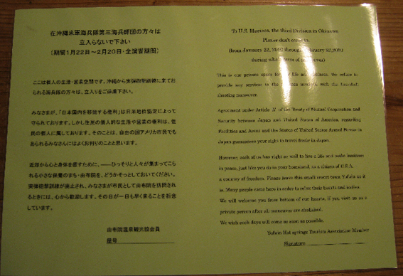 (米軍の外出日程の情報については日出生台では前回2006年の訓練から非公開とされている。わざわざ補足して、