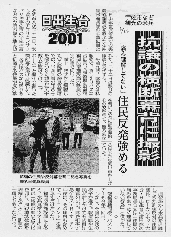 ・安心院で無言の非暴力抗議の住民をバックに米兵らがふざけて記念写真。痛みを理解せずと記事に。翌日から突然自粛。