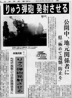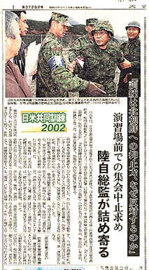 ●2002年11月 ・日米共同訓練。 松川西部方面総監の平和集会乱入事件起きる。