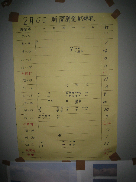 <2月1日から11日までの米軍実弾砲撃訓練> ○総砲撃数 603発(過去最多)○実弾砲撃日数 10日(過去最長)+訓練は開始されたものの砲撃にいたらなかった1日 ○日出生台での米軍訓練では初めての小銃・機関銃の実弾射撃訓練(1日と推定される) ○日出生台での米軍訓練では初めての照明弾の使用 ( ○日出生台での米軍訓練では初めての発煙弾(白リン弾)の使用 ( ○日出生台での米軍訓練では初めての火災が発生 2件(いずれも照明弾、発煙弾使用後に発生) |