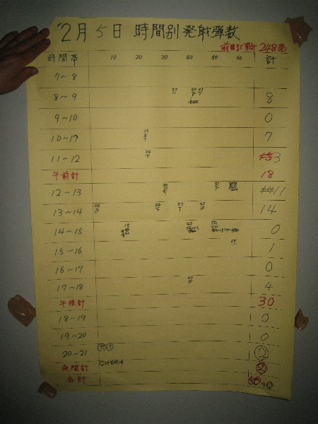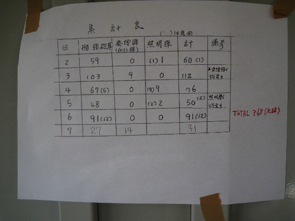 <この日の総砲撃数 92発(うち夜間26発) 発煙弾16発 照明弾21発>