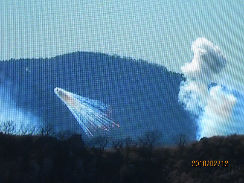 さらに激しい7連発の発煙弾が着弾地に撃ち込まれ、上空で炸裂。その様子は監視小屋からも上のようにはっきりと確認された。